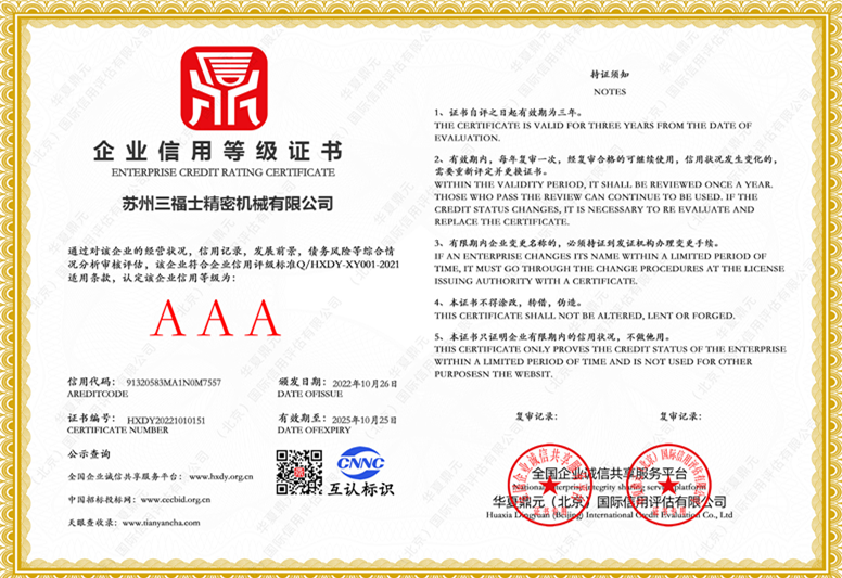 我公司通过AAA企业认证以及守信企业